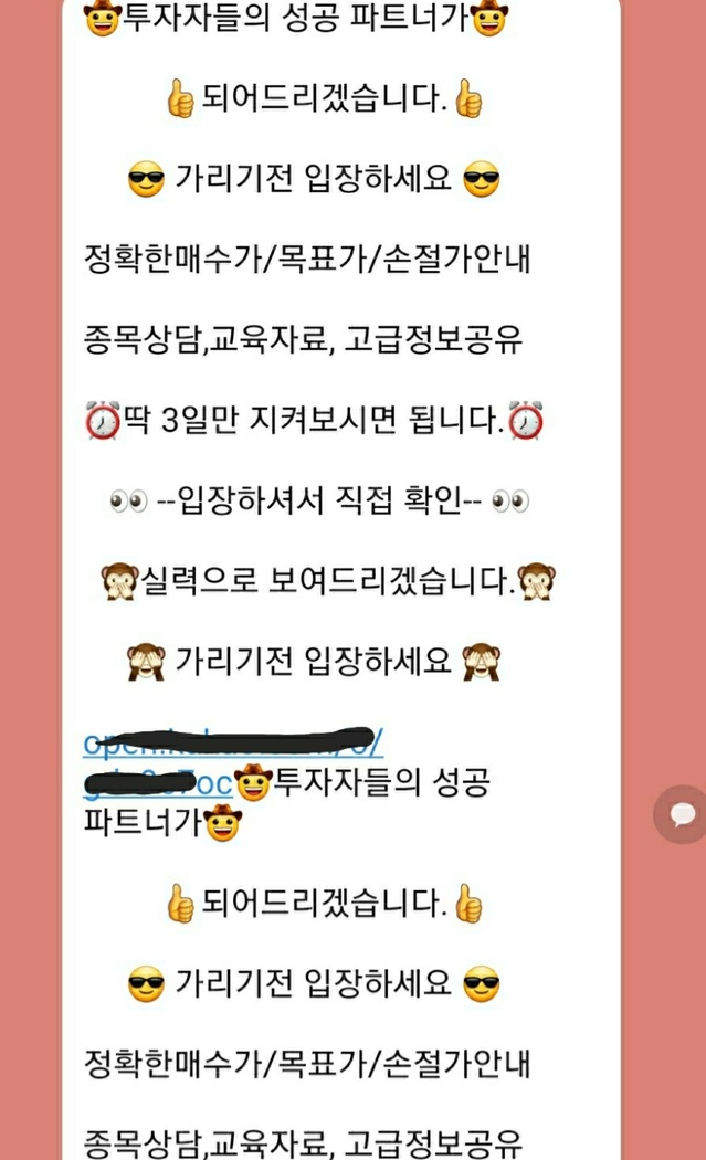 현재 카카오톡 오픈채팅 채널에는 다수의 주식투자 고수를 사칭하는 채널이 난립 중이다.