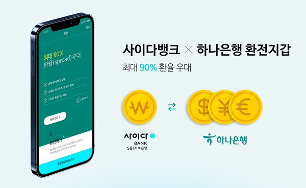 SBI저축은행은 하나은행과 업무제휴를 맺고 사이다뱅크 내 외화 환전서비스 '환전지갑'을 오픈했다고 22일 밝혔다.