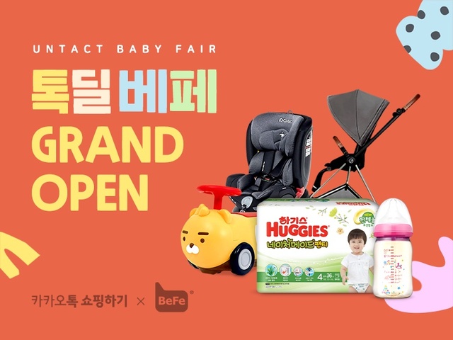 카카오커머스의 쇼핑 플랫폼 '카카오톡 쇼핑하기'가 3월 7일부터 3월 13일까지 '베페 베이비페어'와 '톡딜 베페' 행사를 진행한다. 이번 행사는 코로나19 이슈로 인해 작년과 마찬가지로 쇼핑하기 톡딜로 선보인다.톡딜 베페는 약 100개의 유아동 인기 브랜드의 130개 상품을 톡딜을 활용해 정상가 대비 최대 84% 할인 판매한다. 대표 브랜드로는 하기스, 싸이벡스, 매일유업, 폴레드, 루솔, 브라운 등이 참여해 고객들에게 다양한 상품들을 선보일 예정이다.행사에 참여하는 고객들을 위한 특별한 할인 쿠폰도 지급한다. 유아동 카테고리 톡딜 상품을 2만원 이상 결제 시 사용 가능한 10% 할인 쿠폰을 제공하며, 톡딜 첫 구매자를 대상으로 전 상품 1만원 이상 결제 시 사용 가능한 5,000원 할인 쿠폰을 지급한다.'카카오쇼핑라이브'도 지원 사격에 나서, 3월 7일(일) 17시30분부터 19시까지 카시트, 등 유아용품들을 판매한다.한편, 카카오톡 쇼핑하기는 지난 해부터 코로나19로 판로를 찾기 힘든 파트너사들을 지원하고 고객들의 쇼핑에 도움이 될 수 있도록 오프라인 행사를 언택트로 진행하고 있다. 이번 톡딜 베페는 지난해 2020 톡딜 베페/톡딜 보드게임콘/케이펫페어에 이은 4번째 언택트 행사이다.카카오톡 쇼핑하기 윤예지 매니저는 "코로나로 인해 어려운 시기를 겪고 있는 파트너사들을 돕고 고객들의 쇼핑에 도움을 줄 수 있도록 오프라인 대형 행사를 언택트로 진행한다"며 "앞으로도 다양한 행사를 유치해 카카오톡 쇼핑하기가 파트너사와 고객 모두에게 즐거움을 줄 수 있는 서비스가 될 수 있도록 노력하겠다"고 말했다.
