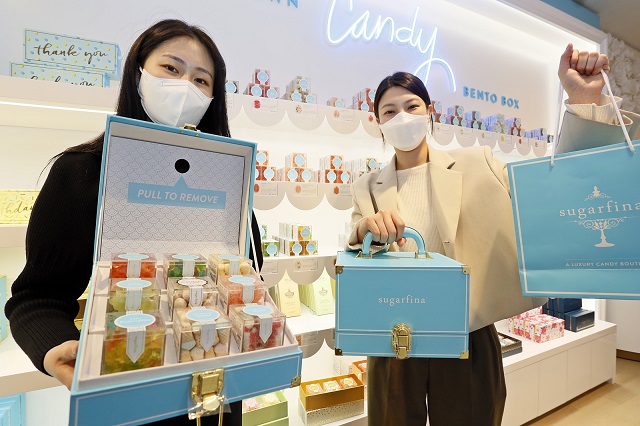 갤러리아백화점은 LA 고급 캔디 전문점 ‘슈가피나(Sugarfina)’를 국내 단독으로 백화점에 선보인다고 16일 밝혔다.어른들을 위한 캔디 부티크라는 콘셉트로 2012년 미국 비버리힐즈에서 시작한 ‘슈가피나’는 샴페인, 위스키, 커피 등 다양한 원재료를 사용한 사탕, 젤리, 초콜릿 등으로 유명하다. 아시아에선 홍콩에 이어 갤러리아명품관 웨스트에서 두번째로 선보이는 매장이다. 대표 상품으로는 샴페인 곰 젤리(100g 1만6000원)와 커피 초콜릿 볼(75g 1만6000원)이다.