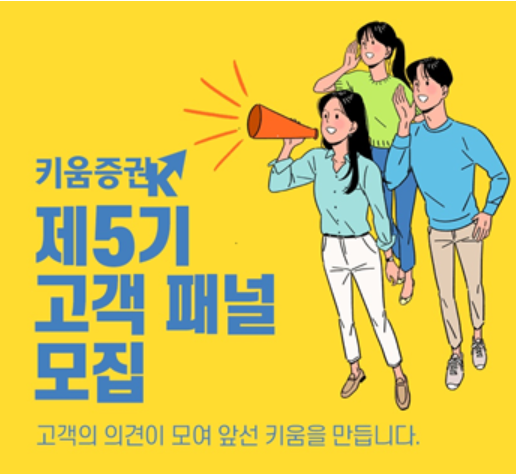 키움증권은 금융소비자와 소통하면서 고객중심 경영을 실천하기 위해 올해 ‘제5기 고객 패널’을 이달 10일부터 31일까지 모집한다고 7일 밝혔다.패널 제도는 회사의 상품과 서비스에 대한 고객의 목소리를 경청하는 소통 창구 역할로 고객의 다양한 의견을 청취해 소비자의 아이디어를 반영한 상품개발, 서비스 환경 개선 등을 통해 고객 만족도 제고와 고객중심 경영 문화 정착을 목표로 한다.고객 패널은 이 회사 고객이라면 누구나 지원 가능하며, 패널로 선정된 고객은 다음달부터 1개월간 회사 금융상품 및 서비스 관련 제언 등 다양한 주제로 업무 및 서비스 개선 의견을 이메일을 통해 접수하면 된다.키움증권은 온라인 증권사로 다양한 VOC(Voice Of Customer) 채널을 운영하고 있으며, 이와 별개로 고객 패널 제도를 통해 소비자의 입장에서 키움증권 시스템 및 서비스에 대한 의견을 수렴해 금융소비자에게 한 발짝 더 다가갈 수 있는 계기가 될 것으로 기대한다.또한 우수 제안에 대해서는 대상 1명, 최우수상 2명, 우수상 2명, 장려상 2명 총 7명을 시상하고 고객 패널에 지원한 고객 전원에게도 소정의 상품이 지급될 예정이다.고객 패널 모집 관련 자세한 사항은 회사 홈페이지 공지사항 및 이벤트 페이지에서 확인 가능하다.회사 관계자는 “패널 고객들의 다양한 의견과 아이디어를 경청해 보다 편리한 고객 서비스를 제공하고 제도 개선에도 적극 반영할 계획인 만큼 많은 고객의 관심과 지원을 부탁한다”고 말했다.