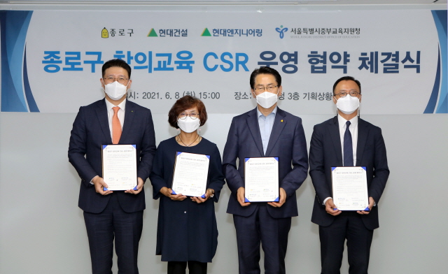 지난 8일 진행된 '종로구 창의교육 협약식'에는 김영종 종로구청장을 비롯해 권혁미 중부교육지원청 교육장, 엄홍석 현대ENG 상무, 문제철 현대건설 상무 등이 참석했다.