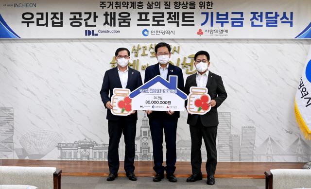 DL건설은 지난 29일 인천시와 인천사회복지공동모금회가 공동 추진하는 '우리집 공간채움 프로젝트'에 기부금 3000만원을 전달했다고 30일 밝혔다.