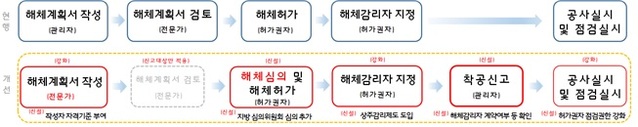 이와별도로 실제 공사착수 여부와 지정감리 계약여부를 확인할 수 있도록 '착공신도제도'를 도입하고, 해체계획서와 다른 시공을 할땐 반드시 변경승인을 받도록 했다. 이와 함께 주요공정 해체작업 진행시엔 영상촬영을 의무화했다.