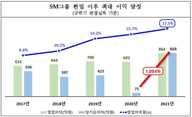 SM그룹 해운부문 계열사인 대한해운은 올해 상반기 매출 4940억원, 영업이익 864억원을 달성했다고 17일 밝혔다. 당기순이익은 868억원으로 2013년 SM그룹 편입 이후 최고 실적이다.연결기준 매출액은 지난해 상반기 4415억원에서 4940억원으로 525억원 증가 했는데 영업이익은 692억원에서 864억원으로 증가했다. 특히 당기순이익은 지난해 75억원에서 1054% 급증했다. 이는 해운 시황 개선바람을 타고 부정기선 2척을 신규 확충한데 따른 것으로 보인다.영업이익률도 지난해 15.7%에서 올해 17.5%로 증가해 5년내 최고치를 기록했다. 부정기선 선대 조정 및 원가절감 노력 덕분이라고 사측은 평가했다.대한해운은 최근 1865억원 규모의 유상증자를 마무리하며 재무구조 개선에 박차를 가하고 있다. 부채 비율은 292%에서 207%로 조정됐고 전자단기사채와 기업어음 신용등급은 A3로 상향됐다.김만태 대한해운 대표는 "외형 확대와 더불어 내실경영을 통해 지속적인 경영 성과를 달성할 수 있도록 임직원 모두가 노력할 것"이라고 했다.