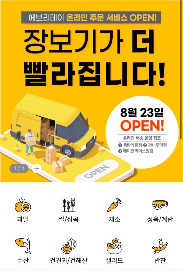 이마트의 기업형 슈퍼마켓(SSM)인 '이마트 에브리데이'가 '퀵 커머스(Quick Commerce·즉시 배송)' 시장에 승부수를 던졌다. 배달의민족의 'B마트', 쿠팡의 '쿠팡이츠 마트' 등 빠르게 커가는 퀵커머스 시장에 맞불을 놓을 것으로 예상된다.이마트에브리데이는 지난 23일 어플리케이션에 '온라인 주문 서비스'를 신설하고, 수도권 일대에서 생필품과 신선식품을 빠르게 배송하는 '스피드 e장보기' 시범 서비스를 개시했다고 25일 밝혔다.서울 광진구, 서초구와 경기 동탄 등 수도권 3개 점포에 한해 시범 서비스 중이다. 이마트 에브리데이 자체 앱으로 쇼핑시 구매금액과 거리 조건이 맞을 경우 점포 차량을 통해 상품을 배송하고 있다. 배달 예상 시간은 최대 2~3시간 내외다.배달 제품은 과일·채소·샐러드, 정육·수산·계란, 빵·시리얼·잼, 우유·유제품, 화장지, 조미료·소스·장류 등 신선식품과 가공식품 등이다. 술과 담배 등 성인인증이 필요한 상품은 제외됐다.신종 코로나바이러스 감염증(코로나19) 확산으로 퀵커머스 시장이 빠르게 커지면서 이마트도 시범 서비스를 운영한 뒤 순차적으로 서비스를 확대하는 방안을 논의할 것으로 보인다.기업형 슈퍼마켓은 대형마트보다 규모는 작지만 도심 주거지와 근접해 있어 빠른 배송이 가능하다는 특징이 있다. 이마트에브리데이는 수년 간 전국에 240여 개 내외로 점포를 유지하고 있어 물류 허브에 추가 투자가 필요하지 않는 점도 강점이다.실제 대형 유통 기업들도 기업형 슈퍼마켓을 물류센터로 삼아 ‘퀵커머스’ 전쟁을 직면했다.홈플러스는 기업형 슈퍼마켓인 '홈플러스 익스프레스'를 통해 고객이 주문한 상품을 1시간 내 즉시 배송하는 서비스를 하고 있다. 1시간 즉시 배송 서비스는 매장 반경 2~2.5km 내 거주하는 고객이 모바일 앱 또는 온라인 사이트에서 상품을 주문하면 집까지 배달해준다.지난 7월 기준 홈플러스 익스프레스의 1시간 즉시배송 서비스 매출은 서비스를 처음 시작한 지난 3월과 비교해 매출이 275% 증가했고, 전월 대비해서는 53% 증가했다.GS홈쇼핑과 통합을 완료한 GS리테일도 퀵커머스에 역량을 집중하고 있다. GS리테일은 지난 6월 자체 배달전용 앱 '우딜-주문하기'를 출시했다. 우딜앱은 고객이 주문한 상품을 한 시간 내 배달하는 서비스로, '우리동네마트'와 'GS25' 메뉴를 통해 배달 주문할 수 있다.우리동네마트 상품들은 GS슈퍼마켓의 상품을 1~2인 가족이 즐기기에 적합한 형태로 배달해주며, 신선·조리·가공 식품 등 3만500여종의 상품을 주문할 수 있다.업계 관계자는 "코로나19 이후 온라인으로 장보기를 하는 트랜드가 지속되고 있다"며 "유통 기업들도 빠른 배송 서비스를 확보하는 게 경쟁력의 척도가 됐다"며 최근 많은 기업들이 퀵커머스에 열을 올리는 이유를 분석했다.