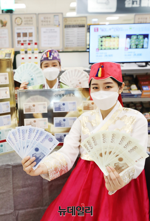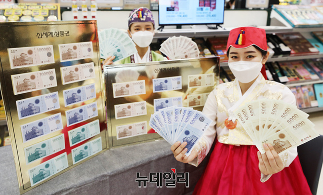 이마트가 25일 서울 성동구 이마트 성수점에서 추석을 앞두고 신세계상품권을 선보이고 있다.