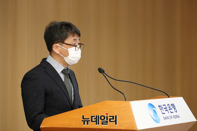 신승철 한국은행 경제통계국 국민계정부장이 2일 오전 서울 중구 한국은행에서 열린 2021년 2/4분기 국민소득(잠정) 설명회에서 발표하고 있다. (사진=한국은행)