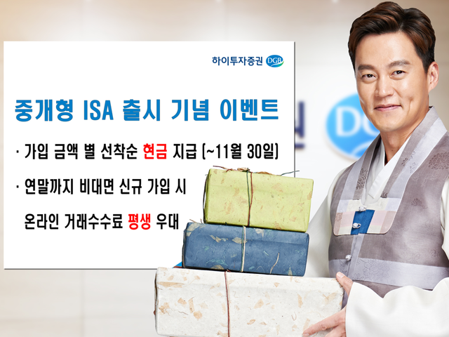 하이투자증권은 오는 11월 30일까지 중개형 ISA에 가입하는 고객을 대상으로 현금 리워드를 제공하는 이벤트를 진행한다고 13일 밝혔다.영업점이나 비대면을 통해 중개형 ISA에 가입하는 고객에게 가입 금액별 선착순으로 가입 금액에 따라 현금이 차등 지급된다.100만원 이상일 경우 1만원, 500만원 이상일 경우 2만원, 1000만원 이상일 경우 3만원을 각 500명에게 지급한다. 단 이벤트 종료 기간까지 잔고를 유지해야 한다.연말까지 비대면으로 중개형 ISA에 가입하는 신규 고객에게는 온라인 거래수수료를 유관기관 비용만 부담하도록 하는 평생 혜택도 제공한다.중개형 ISA는 펀드·ELS·ETF 등 다양한 금융상품과 국내 상장주식을 한 계좌에서 운용해 수익을 낼 수 있는 개인종합자산관리 계좌로 만19세 이상이면 누구나 가입이 가능하다. 3년 이상 운용 시 이자·배당소득에 대해 비과세 및 분리과세 등 세제 혜택을 받을 수 있다.ISA 계좌는 전 금융기관 통틀어 1인 1계좌만 개설이 가능하다. 타 금융기관에 이미 가입을 했다면 계좌이전을 통해 금융기관 간 이전할 수 있다.회사 관계자는 "2023년부터 금융투자소득 과세가 도입됨에 따라 국내 주식 및 공모형 펀드의 이익이 5000만원을 초과할 경우 과세가 되지만 중개형 ISA 가입자의 경우 금융투자소득에 대해 전액 비과세 혜택을 받을 수 있다"며 "중개형 ISA를 통한 투자가 세제 측면에서 일반계좌보다 매우 유리해지므로 금융투자상품 투자시 최대한 활용해야 한다"고 말했다.