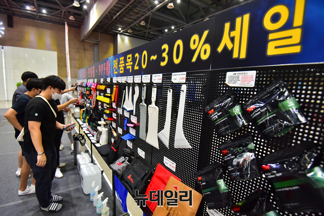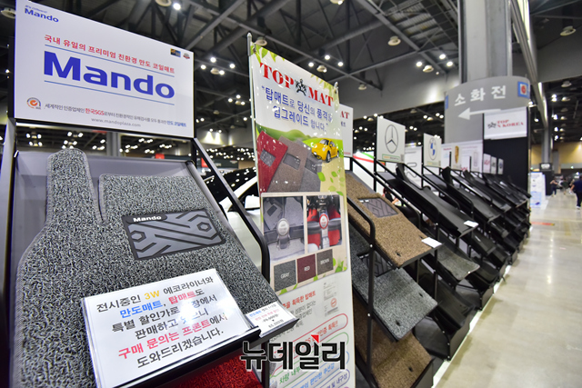 자동차 애프터마켓 전문 전시회 '2021 오토살롱위크' 관계자가 30일 오전 경기 고양시 킨텍스에서 차량 정비용품을 선보이고 있다.'2021 오토살롱위크'는 국내 자동차 에프터마켓 산업 활성화, 국내 업체의 해외시장 진출 및 내수시장 홍보 및 판로 개척, 올바른 자동차 애프터마켓 문화 정착 및 홍보 등을 목적으로 두고 있다.전시품목은 △오토 서비스 △오토케어 △오토파츠 △오토튜닝 △전장용품 △액세서리 △튜닝샵 △모터스포츠 △오토모바일 △미래자동차 쇼케이스 △캠핑카 △오토바이크 △이모빌리티 등이다.9월 30일부터 10월 3일까지 나흘 동안 고양 킨텍스 제1전시장에서 진행된다.(경기 고양=강민석 기자)