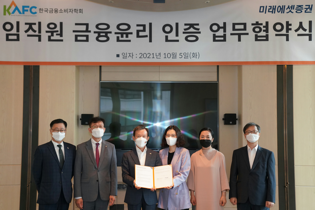 미래에셋증권은 지난 5일 한국금융소비자학회와 '임직원 금융 윤리 인증 협약식'을 개최하고 업계 최초로 임직원 금융 윤리 인증 제도를 도입한다고 6일 밝혔다.