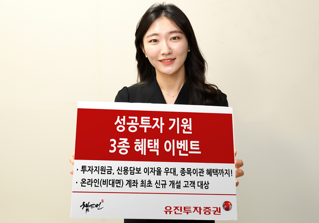 유진투자증권은 온라인(비대면) 계좌를 최초 신규 개설한 고객 대상으로 ‘성공투자 기원 3종 혜택 이벤트’를 진행한다고 12일 밝혔다.먼저 이달 31일까지 온라인 계좌를 최초로 신규 개설한 고객이 당월 내 국내주식 거래 시 금액에 따라 최대 5만원의 투자지원금을 제공한다. 이벤트가 적용되는 국내주식은 코스피, 코스닥, K-OTC, 코넥스, ETF, ETN 등이다.또 온라인 계좌 최초 신규 개설 고객은 이달부터 오는 12월 31일 한도 소진 시까지 이벤트 신청 당월에 조건 충족 시 30일간 이자율 연 1.99% 혜택을 받을 수 있다. 매월 추첨을 통해 신용융자, 담보대출 금액에 따라 백화점 상품권, 스타벅스 아메리카노 상품권도 제공할 계획이다.아울러 오는 31일까지 온라인 계좌 최초 신규 개설 고객이 유진투자증권으로 국내주식을 입고하면, 순입고 금액에 따라 최대 500만원을 받을 수 있다. 단 입고 후 국내주식 100만원 이상 거래와 12월 8일까지 순입고 금액 유지 조건을 충족해야 한다.김경식 디지털금융실장은 ”최근 국내 주식시장의 경우 박스권 장세가 이어지고 있어 투자자들의 고민이 깊다”며 ”고객들의 성공 투자를 지원하기 위해 이번 3종 이벤트를 마련했다”고 전했다.이벤트에 대한 보다 자세한 내용은 회사 홈페이지를 참고하거나 고객만족센터로 문의하면 된다.