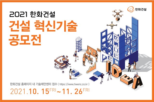 한화건설이 우수한 건설기술 경쟁력을 지닌 중소협력사와의 동반성장을 위해 '2021 한화건설 혁신기술 공모전'을 개최한다.