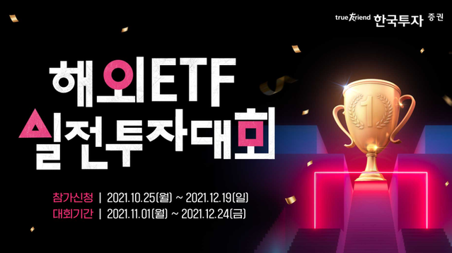 한국투자증권은 온라인 거래 서비스 뱅키스(BanKIS) 고객 대상 '해외 ETF 실전투자대회'를 개최한다고 27일 밝혔다.대회는 11월 1일부터 12월 24일까지 진행된다. 계좌 내 예탁 자산 규모에 따라 ▲1000만원 이상 ▲100만~1000만원 미만 ▲10만원 이상~100만원 미만 3개 리그를 운영하며, 수익률 부문과 수익금 부문으로 나눠 경쟁하는 방식이다.최소 3종목 이상 거래 및 매매 회전율 300% 이상 조건을 충족해야 한다.대회 종료 후 수익금 리그 9명, 수익률 리그 9명 등 18명에게 상금 총 1850만원을 준다. 일일 거래대금 상위 3명에게는 최대 30만원을 별도 지급한다.참가 신청은 12월19일까지 회사 홈페이지와 MTS, HTS에서 가능하다. 참가자 가운데 선착순 2000명에게는 스타벅스 커피 쿠폰을 증정한다.정일문 사장은 "이번 대회를 통해 해외 투자에 관심을 갖고 있는 개인투자자들이 다양한 실전 거래 경험을 쌓고 다채로운 자산배분 전략을 세울 수 있길 바란다"고 밝혔다.