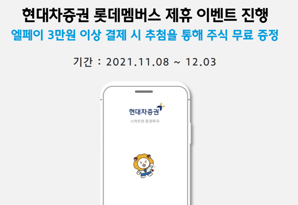현대차증권은 디지털 생태계 확장에 나서기 위한 초석으로 새로운 고객 금융 서비스를 제공하고자 롯데 멤버스와 서비스 제휴를 맺고 기념 이벤트를 진행한다고 8일 밝혔다.이번 제휴를 통해 현대차증권은 앞으로 롯데멤버스와 공동 프로모션 및 플랫폼 연동을 통한 금융상품 판매 활성화, 제휴 상품 개발 등에 나선다.현재 본허가 심의 중인 마이데이터 사업과 관련 추후 인가 시 롯데멤버스의 유통 데이터와의 결합을 통해 고객 맞춤형 금융상품 개발에도 나설 계획이다.제휴 기념으로 오늘부터 내달 3일까지 엘포인트(L.POINT) 모바일 애플리케이션에서 주식 무료 증정 이벤트를 진행한다. 이벤트 기간 내 현대차증권 계좌를 개설(주민번호 기준 최초 계좌 개설 고객 대상)하고 롯데맴버스의 간편결제 서비스인 엘페이를 3만원 이상 사용하면 이벤트에 참여할 수 있다.이벤트 응모 고객 중 5000명을 추첨해 국내 상장된 9개 기업의 주식 중 랜덤으로 1주를 증정한다.권지홍 리테일사업부장은 “핀테크 플랫폼과의 협업을 통해 고객들이 보다 쉽고 편리하게 주식과 펀드에 투자할 수 있도록 지원을 확대할 예정”이라며 “향후 금융서비스 이용 전반에 걸쳐 고객이 실질적으로 원하는 방향의 맞춤형 자산관리 서비스를 확대하겠다”고 말했다.한편 당사 주식 거래나 금융상품 가입 시 엘포인트를 현금처럼 사용할 수 있는 서비스를 연내 선보일 예정이다. 그리고 쇼핑 후 적립된 엘포인트가 펀드상품 등에 자동투자되는 잔돈 투자 서비스도 함께 개발 중이다.