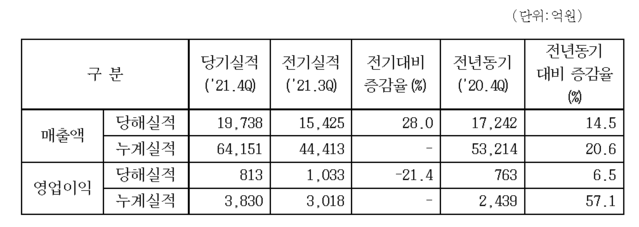 사업별로는 항공엔진 사업의 국제공동개발사업(RSP, Risk & Revenue Sharing Program) 비용 감소 및 국내 방산 매출 증가와 민수사업들의 실적 호조가 성장을 견인했다.항공분야에서 민수 엔진사업의 점진적 회복에 따라 민수 엔진부품 장기공급계약(LTA, Long Term Agreement)사업이 전년 대비 매출이 증가했다.회사 측은 "향후 리오프닝(경기재개) 및 비격리 여행노선 확대에 따라 민수 엔진사업의 추가적인 개선을 기대한다"고 밝혔다.방산분야에서는 한화디펜스가 내수 매출의 증가로 견고한 실적을 달성했다. 최근 호주에 이어 이집트와의 연이은 K9 자주포 수출계약에 힘입어 앞으로 지속적으로 글로벌 방산시장 공략에 집중해 수익성 개선을 더해갈 예정이다.한화시스템은 지난해 매출 2조895억원, 영업이익 1121억원을 기록해 사상 최대 매출과 영업이익을 달성했다.민수사업에서는 한화테크윈의 CCTV 사업이 미주 B2B 시장에서 지속적으로 이익을 창출했다. 파워시스템은 2020년에 이어 지난해 역대 최대 수주를 기록해 꾸준한 매출과 수익성 개선을 기대하고 있다.한화정밀기계 또한 중국 LED시장과 소형가전시장 중심의 매출 증가에 힘입어 사상 최대 매출과 영업이익을 달성했다.한화에어로스페이스는 앞으로 항공사업의 회복과 방산사업 매출 증가, 민수사업의 안정적인 수익 창출을 바탕으로, 우주산업과 미래 모빌리티 분야 등 미래사업에 대한 지속적인 투자로 기술적 우위와 신성장동력을 확보해 나아갈 예정이라고 밝혔다.