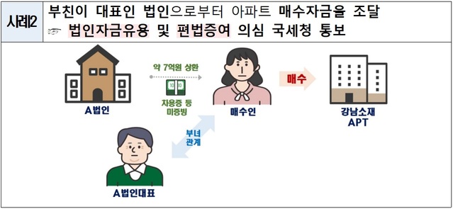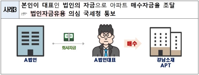 #.A씨는 서울 강남소재 아파트를 29억원에 매수하면서 부친이 대표인 B법인으로부터 약 7억원을 조달했다. 매수인 C씨는 서울 강남소재 아파트를 41억원에 사면서 본인이 대표로 있는 법인에서 약 16억원을 유용했다.