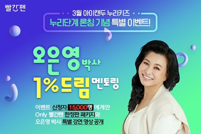 교원 빨간펜은 정신건강의학·소아청소년 정신과 전문의 오은영 박사와 손잡고 '1% 드림 멘토링' 이벤트를 연다고 17일 밝혔다.'아이캔두 누리키즈' 론칭을 기념해 4~7세 어린이의 발달 과정에 따른 올바른 교육 및 양육 정보를 제공하고자 마련됐다.첫 강연 주제는 '사랑하는 우리아이 어떻게 이해해줘야 할까, 어떻게 말해줘야 할까'다. 자녀를 이해하는 법, 관심을 기울이는 법, 올바른 지도 및 양육법을 소개할 예정이다.오 박사 강연은 '감정 발달 패키지'를 신청해야 들을 수 있다. 모바일 초대장은 신청자 대상으로 이달 29일 발송된다.감정 발달 패키지는 ▲오은영 박사 온라인 강연 모바일 초대장 ▲아이캔두 누리키즈 교재 총 2권(1단계·3단계) ▲똑똑 마음단추 무시무시 꼬마양 1권 ▲감정 발달 키트(감정카드·워크북·보드게임 구성) ▲오은영 박사 손글씨 엽서 ▲패키지 가방 등으로 구성됐다.교원 빨간펜 관계자는 "아이캔두 누리키즈 출시를 기념해 이번 이벤트를 마련했다"며 "오은영 박사의 강연을 통해 유익한 정보를 얻길 바란다"고 말했다.