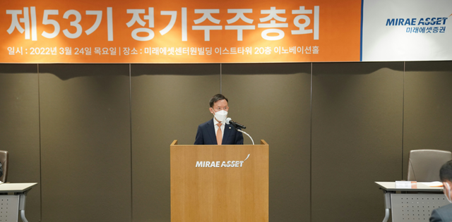 최현만 미래에셋증권 회장이 대표이사 연임에 성공했다.미래에셋증권은 24일 서울 을지로 센터원 빌딩(본사)에서 정기주주총회를 열고 업계 최초 2년 연속 영업이익 1조원 돌파, 업계 최초 연간 당기순이익 1조원 돌파 등 우수한 경영 성과를 달성한 최현만 회장의 6년 연속 대표이사 연임을 확정했다. 이만열 사장은 최현만 회장과 함께 각자 대표이사에 선임됐다.최현만 회장은 “고객 동맹 정신을 바탕으로 주주와 함께 동반 성장할 수 있도록 앞으로도 주주환원정책을 적극적으로 펼칠 것”이라며 “그동안 철저한 리스크 관리를 기반으로 수익구조를 다변화하고 투명한 경영을 통해 성장과 안정성을 함께 추구해온 만큼 앞으로도 고객과 투자자들에게 더 인정받을 수 있도록 최선을 다하겠다”고 말했다.강성범 부사장은 사내이사로 신규 선임했고, 사외이사엔 성태윤 사외이사와 석준희 사외이사를 신규 선임하고 기존 정용선 사외이사와 이젬마 사외이사를 재선임했다.이사회의 독립성을 강화하기 위해 이사회 의장으로는 정용선 사외이사를 선임했다. 감사위원으로는 정용선 사외이사를 재선임했으며, 감사위원회 위원으로는 성태윤, 이젬마 사외이사가 참가한다.신규 선임된 성태윤 사외이사는 현재 연세대학교 상경대학 경제학과 교수로서 금융·경제 전문가다. 석준회 사외이사는 고려대학교 전기전자공학부 교수로서 IT·신성장 전문가다.미래에셋증권은 2021 회계연도 재무제표를 승인하고, 보통주 300원과 우선주 330원, 2우선주 300원을 배당하기로 결정했다. 이 회사는 출범 이후 지속적으로 주주친화정책을 시행해왔으며 자사주 매입 및 소각을 확대함으로써 적극적인 주주환원정책에 나선 바 있다.지난해 8월 향후 3년 동안 주주환원성향을 조정 당기순이익의 30% 이상 유지하겠다고 선언한 바, 이번 기배당금과 올해 소각한 자사주 총 금액의 합은 약 3622억원으로 이미 주주환원 성향 30%을 뛰어넘었다. 2020년도 이후 미래에셋증권이 취득한 자사주 총 금액의 합은 5637억원으로 같은 기간 동안 약 3244억원 규모의 자사주를 소각했다.