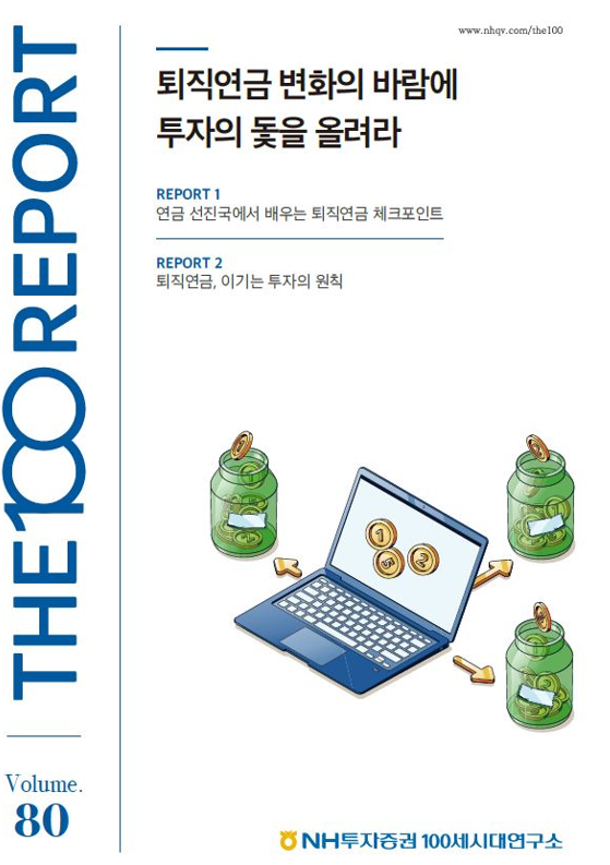 NH투자증권 100세시대연구소는 ‘퇴직연금 변화의 바람에 투자의 돛을 올려라’를 주제로 THE100리포트 80호를 발간했다고 6일 밝혔다.THE100리포트는 연구소에서 매월 발간하는 리서치자료로, 행복한 100세시대를 위한 생애자산관리 및 100세시대 트렌드 등 다양한 주제를 연구한다.이번 호에선 ‘연금 선진국에서 배우는 퇴직연금 체크포인트’, ‘퇴직연금, 이기는 투자의 원칙’ 등이 담겼다.김진웅 NH WM마스터즈 수석전문위원(100세시대연구소장)은 “최근 DC형 퇴직연금 비중이 높아지고 올해 하반기에는 디폴트옵션 제도가 도입되는 등 퇴직연금 시장에 변화의 바람이 불어오고 있다”며 “미국 및 호주의 자본시장이 DC형 퇴직연금과 함께 크게 성장했듯 변화의 바람 속에서 퇴직연금 가입자가 이를 간과하기보다는 투자에 대한 고민을 하고 수익률을 높이기 위한 자기만의 투자 원칙을 만들 필요가 있다”고 강조했다.