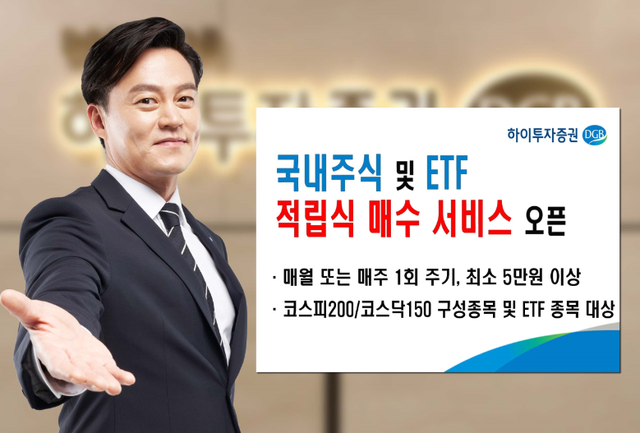 하이투자증권은 정기적으로 일정금액을 주식과 ETF에 투자할 수 있는 ‘국내주식 및 ETF 적립식 매수 서비스’를 오픈했다고 3일 밝혔다.이 회사는 그간 일정금액의 정기적인 투자는 펀드를 통한 정액 적립식 투자 서비스만을 제공해왔다.투자자에게 보다 다양한 투자 수단을 제공하기 위해 투자자가 신청한 금액 내에서 정기적으로 지정한 날짜에 자동적으로 국내주식과 ETF 종목을 매수할 수 있는 이번 서비스를 오픈하게 됐다는 설명이다.이번 서비스는 코스피200 및 코스닥150 구성종목과 ETF종목(레버리지 등 파생ETF 등 제외)을 대상으로 총 5개 종목을 신청할 수 있다. 종목당 최소 5만원 이상 1만원 단위로 신청 가능하며 중복 등록은 불가능하다.매월 또는 매주 1회의 매수 주기로 최소 3개월에서 최대 3년까지 매수 기간을 설정할 수 있으며, 주문은 시장가 또는 조건부지정가로 진행된다.회사 관계자는 “주식 및 ETF 적립식 매수 서비스를 통해 우량 주식을 정기적으로 일정금액에 매입하고자 하는 장기 투자자들에게 유용한 투자수단이 될 것”이라며 “향후에도 투자자들의 투자에 도움될 수 있는 유용한 서비스를 지속적으로 확대해나갈 것”이라고 밝혔다.서비스를 활용하고자 하는 고객은 회사 영업점과 HTS 싸이칸 Plus 및 MTS 투자의 힘을 통해 신청할 수 있다.