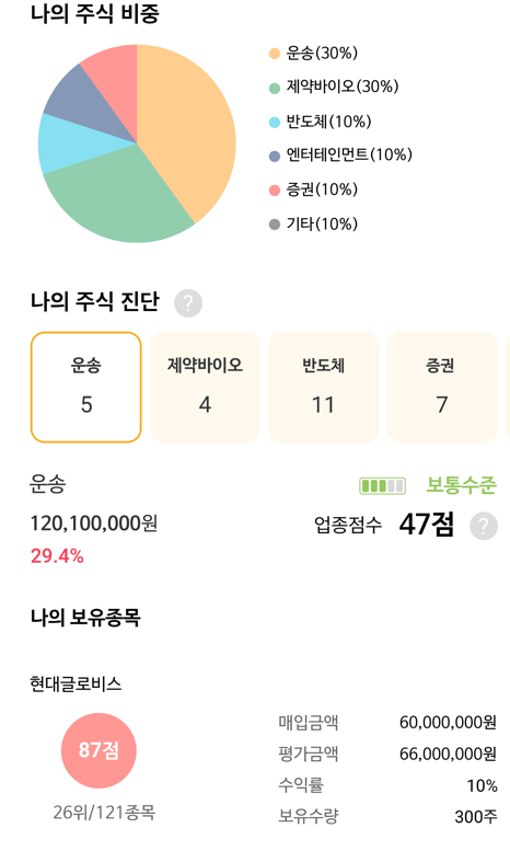NH투자증권은 마이데이터를 활용한 주식 진단 서비스를 오픈했다고 13일 밝혔다. 지난 1월 마이데이터 서비스 출시 이후 고객들의 요청에 따라 주식 진단 항목 서비스를 추가로 제공한다.보유 주식 진단 서비스는 마이데이터 가입 후 투자성과 리포트 메뉴에서 확인 가능하다. 고객은 고객이 보유한 종목이 몇 점짜리 주식인지, 해당 종목이 속한 업종은 몇점인지 확인할 수 있다. 점수는 주식의 성장성과 변동성, 수급, 배당 등을 고려해 NH투자증권 자체평가 모델로 매겨진다.먼저 업종의 점수와 순위로 해당 업종의 투자 매력도를 점검하고, 해당 업종에 보유 중인 주식의 점수와 순위를 차례대로 확인해 비교할 수 있다. 고객마다 보유 종목 업종의 상위 3개 종목 등도 확인할 수 있어 추가 정보 확인도 쉽고 비교도 가능하다.투자성과 리포트는 회사 마이데이터 전용 서비스로, 타 금융사 보유 주식과 펀드의 금융상품 투자 성과를 분석한다. 이달 주식 투자 실현 수익, 배당금까지 포함한 종목별 성과를 제공하고 있다. 이 회사는 이번에 보유 주식 진단을 추가하면서 고객의 투자 성과를 높일 수 있는 기회도 제공한다는 입장이다.정중락 플랫폼혁신본부 대표는 “NH투자증권 마이데이터 서비스에서는 주식 투자의 가장 기본 방식 중 하나인 톱다운 방식으로 보유 주식을 점검해 볼 수 있다”며 “앞으로도 마이데이터 서비스를 통해 고객들에게 자산관리의 성공 경험을 제공할 예정”이라고 밝혔다.한편 NH투자증권은 현재 마이데이터 서비스에 새로 가입한 고객 전원에게 케이뱅크 비상장주식 2주를 지급하는 이벤트를 진행하고 있다. QV에서는 오는 31일까지, 나무증권에서는 오는 15일까지 참여할 수 있다.