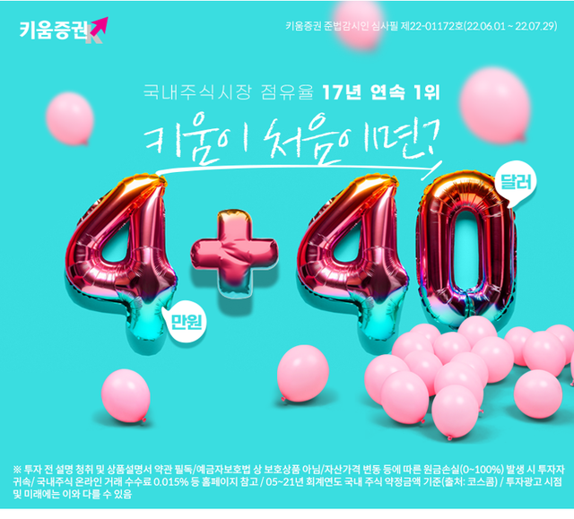 키움증권은 비대면 주식 계좌를 처음 개설한 고객들을 대상으로 현금 최대 4만원을 증정하는 이벤트를 오는 7월 29일까지 약 2개월간 진행한다.이벤트 기간 동안 최초 비대면 주식 계좌를 개설한 고객 중 국내주식(ETF, ETN 포함)을 1만원 이상 거래한 고객에게 현금 1만원, 100만원 이상 거래한 고객에게 추가 3만원을 지급한다.또한 비대면 계좌를 최초 개설한 고객에게 미국주식 투자 지원금 40달러를 증정한다. 타사 계좌에서 키움증권 계좌로 주식 입고 시 최대 현금 115만원을 증정한다.자세한 내용 및 문의는 회사 홈페이지나 키움금융센터를 이용하면 된다.