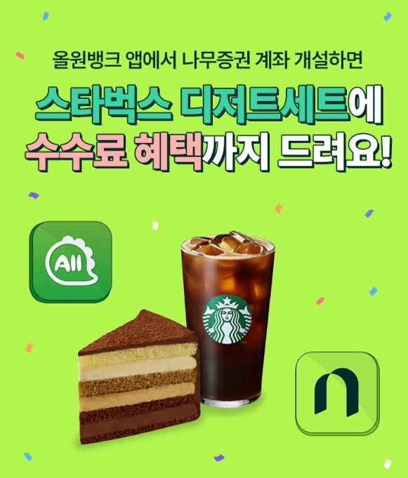 NH투자증권은 NH농협은행 모바일뱅킹 앱 올원뱅크와 연계해 나무증권 계좌개설 이벤트를 실시한다고 22일 밝혔다.해당 이벤트는 올원뱅크를 통해 계좌 개설한 나무 고객을 대상으로 진행되며, 오는 30일까지 진행된다.별도 신청 없이 올원뱅크를 통해 나무증권 계좌를 개설한 고객 전원에게 스타벅스 기프티쇼를 지급한다. 단 계좌 개설 시 마케팅 동의가 필요하며, 해당 경품은 오는 8일 일괄 지급된다.나무증권 최초 신규 고객에겐 수수료 우대 혜택을 제공한다. 국내주식 수수료를 평생 우대 적용받을 수 있으며, 2024년 3월 31일까지 해외주식 온라인 거래 수수료 0.09% 우대, 환전 우대 100% 혜택을 자동으로 적용받을 수 있다.또한 추가 이벤트 신청 시 1만원 상당의 해외주식도 제공한다. 전세계에서 가장 비싼 주식인 버크셔해서웨이 Class A주를 소수점 주식으로 제공한다.NH투자증권은 앞으로도 나무증권을 통해 고객의 성장을 돕는 플랫폼으로서 다양한 시도를 한다는 계획이다.정병석 나무고객본부 대표는 “이번 이벤트는 계열사 고객들에게 새로운 투자경험을 제공하기 위한 활동”이라며 “나무증권을 통해 차별화된 서비스를 제공하는 금융투자 파트너가 될 것”이라고 밝혔다.