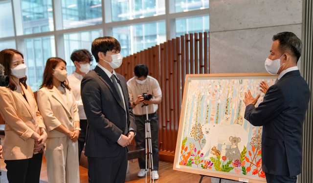 미래에셋증권은 ESG 사회공헌활동의 일환으로 서울 을지로 미래에셋센터원빌딩 2층 로비에서 ‘발달장애 예술가 작품 전시회’를 8일까지 실시한다고 4일 밝혔다.이번 전시회는 발달장애인들의 사회·경제적 자립 기반을 지원하고 임직원의 기부 문화 확산과 소통의 장을 마련하고자 준비했으며, 임직원 기부 활동과 함께 미래에셋증권의 매칭 기부도 함께 이뤄질 예정이다.자작나무 숲속의 동물 친구들, 꽃보다 냥이 등 총 23개 작품이 전시됐으며, 목각인형의 모험, 만월 등 NFT 작품도 함께 전시돼 관람객들의 높은 관심을 받았다. 실제로 전시된 작품을 본 후 작품 구매에 대한 임직원들의 문의가 끊이지 않는 등 작품에 대한 호응도가 상당히 높았다는 설명이다.최현만 회장은 “이번 전시회를 통해 발달장애 예술가들의 작품들이 임직원뿐 아니라 고객들에게도 힐링의 시간을 선사하는 계기가 될 것으로 기대한다”며 “앞으로도 다양한 사회공헌활동을 통해 발달장애인들의 자립 기반을 지원하고 선한 영향력을 전파하기 위해 최선을 다할 것”이라고 말했다.