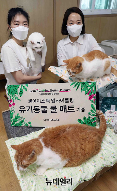 신세계백화점이 친환경 사회공헌 활동의 일환으로 폐 아이스팩 3천개를 재활용해 만든 쿨매트 350개를 사료·건강 간식과 함께 경기도 안성 평강공주 보호소, 강릉 보호소 등 전국 6개의 유기동물 보호센터에 기부했다고 18일 밝혔다.