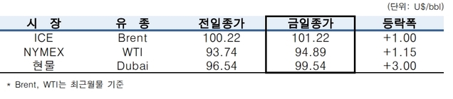 원유생산 감소 속 정제가동률 소폭 상승 원인브렌트유 101.22달러, 두바이유 99.54 달러 거래