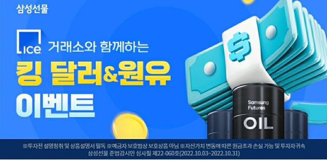 삼성선물은 이달 31일까지 ICE거래소 달러인덱스와 브렌트유 선물을 거래하는 고객에게 현금을 지급하는 이벤트를 실시한다고 5일 밝혔다.이 회사 해외선물 계좌가 있고 올해 대상 품목의 거래가 없는 고객이면 누구나 참여 가능하며, 계좌 개설은 회사 앱(MTS)을 통해 비대면으로 쉽게 개설할 수 있다.이벤트 신청 후 달러인덱스나 브렌트유 상품을 1계약만 거래해도 1만원 현금이 지급되고, 30계약 거래 시 10만원, 100계약 거래 시 30만원, 300계약 거래 시에는 50만원의 현금이 지급된다.ICE거래소는 뉴욕증권거래소를 비롯한 12개 글로벌 거래소를 보유한 세계 최대 거래소 중 하나다. 삼성선물은 국내 증권·선물사 최초로 ICE거래소와 콜라보해 이번 이벤트를 개최했다.ICE거래소의 달러인덱스 상품은 주요 통화 대비 미국 달러의 가치를 지수화했고, 브렌트유는 WTI, 두바이유와 함께 세계 3대 유종에 속하는 상품이다.회사 관계자는 "미 중앙은행의 고강도 긴축과 우크라이나 전쟁에 따라 글로벌 달러가 연일 고점을 경신하고 원유의 변동성이 커지면서 상승과 하락 방향에 모두 투자가 가능한 선물 상품에 대한 시장의 관심이 여느 때보다 높은 상황"이라면서 "이번 이벤트는 평소 해외선물에 관심 있는 고객들에게 좋은 기회가 될 것"이라고 말했다.