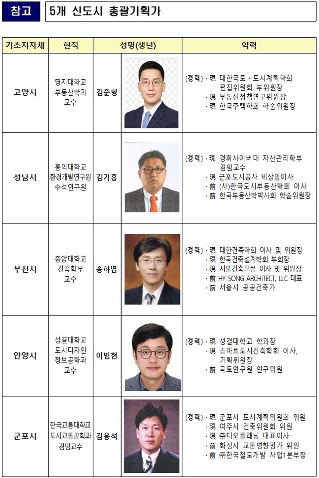 국토부 11일 1기신도시 정비추진현황 및 향후계획 발표 10월말 국토장관-지자체장 간담회…정비계획 투트랙 수립 5개 신도시 총괄기획가 위촉…주민소통 강화·정책자문 수행