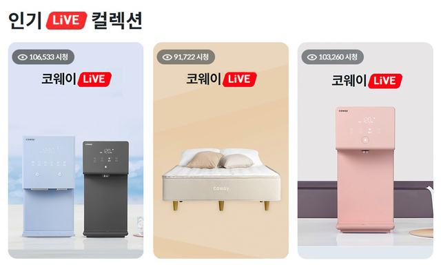 한편, 코웨이는 코웨이 Live 인기에 힘입어 오는 17일 오전 11시부터 코웨이 인기 제품인 아이콘 정수기 시리즈 특별전을 선보인다. 해당 라이브 방송을 통해 아이콘2, 아이콘 얼음정수기를 구매한 고객 전원에게 블렌더를 증정한다.