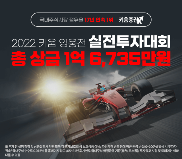키움증권은 올해 제3회 키움 영웅전 실전투자대회 참가신청 접수를 시작한다고 17일 밝혔다.대회 신청은 이날부터 12월 4일까지 가능하며, 대회 기간은 10월 31일부터 12월 16일까지다.이번 대회는 주식리그, 선물옵션리그로 나눠 진행되며, 총 1억6735만원의 상금이 증정될 예정이다.주식리그는 예탁자산별로 1억클럽, 3000클럽, 500클럽 및 100클럽으로 구성되며, 선물옵션은 단일클럽으로 구성된다.주식리그 수익률 1위에게는 각 1억클럽 5000만원, 3000클럽 2000만원, 500클럽 800만원, 100클럽 100만원의 상금이 주어지며, 선물옵션리그 1위에게는 300만원의 상금이 지급된다.또한 주식리그 수익금 1위에게는 각 1억클럽 1500만원, 3000클럽 500만원, 선물옵션리그 수익금 1위에게는 100만원의 상금이 주어진다.