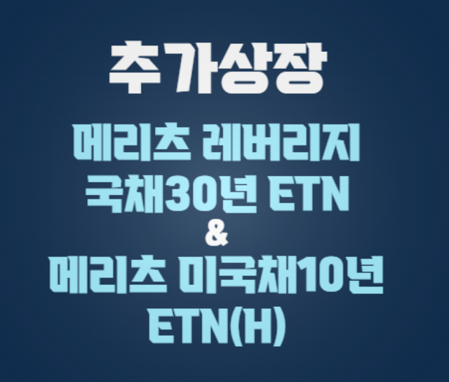 메리츠증권은 기존 한국거래소에 상장된 ETN(상장지수증권) 중 ▲메리츠 레버리지 국채30년 ETN ▲메리츠 미국채10년 ETN(H) 2종을 추가 상장한다고 18일 밝혔다.