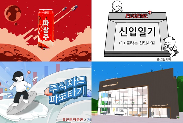 회사의 MZ세대를 공략한 독특한 시도는 이뿐 아니다.유진투자증권은 MZ세대와 좀 더 가깝에 호흡하기 위한 방법으로 이들에게 영향력이 큰 웹툰 플랫폼에 주목했다. 회사 브랜딩과의 접점을 찾아 네이버 브랜드 웹툰 '신입일기'를 지난해 주1회, 총 8회 분량으로 선보였다. MZ세대 직원들의 의견을 모아 선정한 '자까'의 웹툰은 MZ세대들의 취향과 감성을 자유자재로 다룬 내용으로 크게 흥행했다. 누적 조회수는 881만회로 상업적 색채가 짙은 브랜드 웹툰임에도 이례적으로 웹툰 순위 최상위권을 기록했다.이 회사는 MZ세대에게 친숙한 메타버스도 적극 활용 중이다. 젊은 층과의 소통 강화를 위해 메타버스 플랫폼 제페토에 서울 문화특화WM센터인 챔피언스라운지 메타버스 지점을 지난해 오픈했다. 이 연장선으로 올해 8월엔 또 다른 메타버스 플랫폼 제조도를 통해 미니게임 형태의 '주식차트 파도타기'를 선보였다. MZ세대를 대상으로 건강한 투자문화 조성한다는 취지다.유진투자증권은 증권사 최초 수제맥주로 편의점에 등판하기도 했다. MZ세대들이 수제맥주에 대한 선호도가 높다는 점을 착안, 이들의 성공 투자를 응원하는 브랜드 캠페인으로서 수제맥주 전문회사인 플래티넘크래프트와 협업해 '따상주'를 선보였다. 주가 상승을 기원하는 마음을 담은 캠페인 뮤직비디오 '한주해'도 제작해 눈길을 끌었다. -