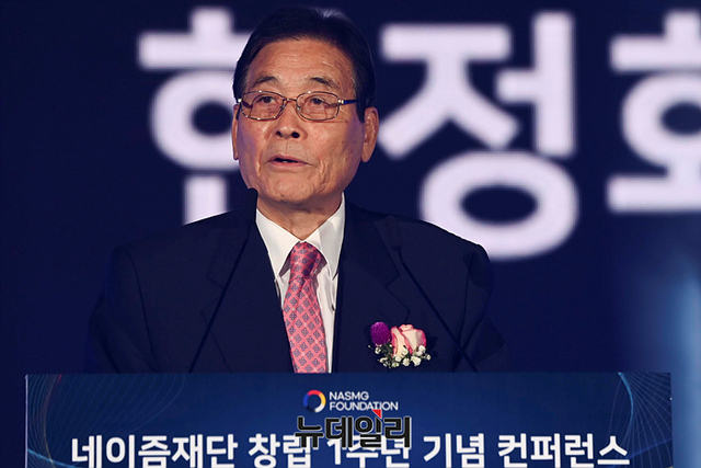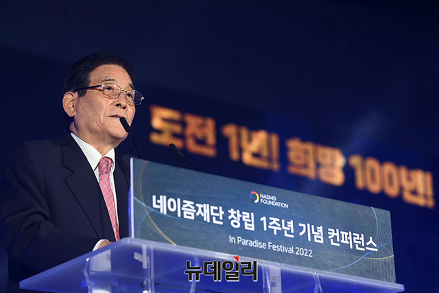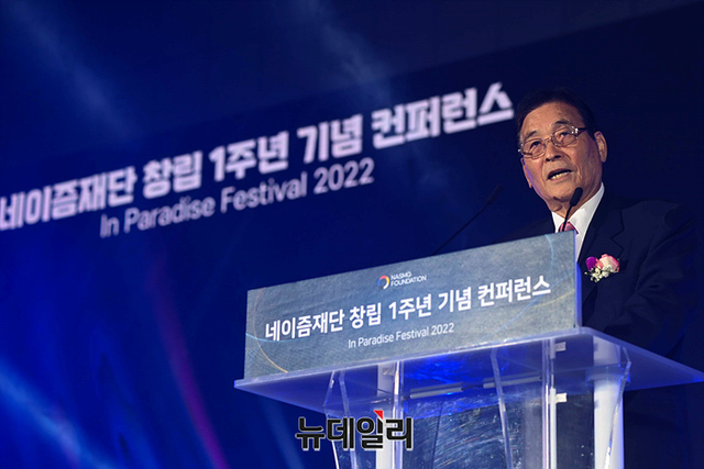 김종학 대한민국헌정회 수석부회장이 12일 오후 경기 고양시 일산 킨텍스에서 열린 '네이즘재단 창립 1주년 기념 컨퍼런스'에서 축사를 하고 있다.이번 행사는 '도전 1년, 희망 100년'이라는 슬로건으로 네이즘재단의 도약을 향한 끊임없는 힘을 확인하고자 하는 취지로 열린다. 임직원 및 회원 5,000명과 함께 리더십 수료식과 핸드프린팅 퍼포먼스, 축하 공연 등이 마련돼 있다.네이즘재단은 블록체인 전문 투자 기업으로 △교육 기관 '알토가 아카데미' △투자 기업 '러핀인베스트먼트' △블록체인&실물경제 연동 서비스사 '유클리드 페이' 등 블록체인 서비스를 제공한다. (경기 고양=강민석 기자)