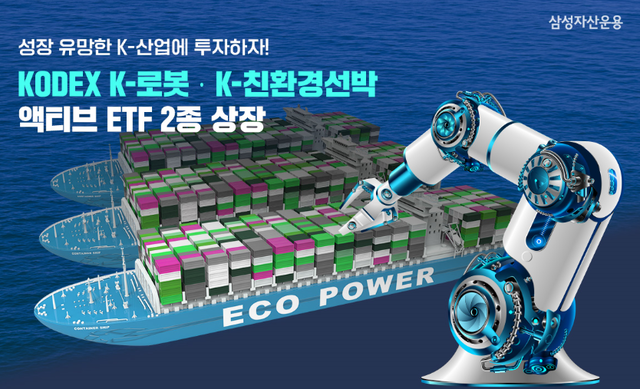 삼성자산운용은 14일 ‘삼성 KODEX K-로봇 액티브 ETF’와 ‘삼성 KODEX K-친환경선박 액티브 ETF’ 2종을 신규 상장한다고 밝혔다.삼성 KODEX K-로봇 액티브 ETF는 경쟁력 있는 국내 로봇 관련 기업에 투자해, 장기적으로 코스피 대비 높은 자본이득을 추구하는 액티브 ETF다. 자동화·무인화 기술과 관련된 로봇 관련 기업에 집중 투자하는 국내 최초 로봇 ETF다.로봇은 외부 환경을 스스로 지각하고 상황을 인지해 자율적으로 동작하는 기계장치로 사용 용도에 따라 산업용 로봇과 서비스용 로봇으로 나뉜다. 국제로봇협회에 따르면, 산업용 로봇은 2021년 기준 43만5000유닛이 설치된 것으로 추정되며 2024년까지 연평균 6%대의 성장을 예측하고 있다. 전문서비스용 로봇은 2020년 기준 13만1000유닛이 설치돼 전년대비 41% 이상 성장했고, 개인서비스 로봇은 1900만유닛으로 전년대비 6% 성장했다. 특히 서비스용 로봇 시장은 가정과 의료, 농업, 방산 등 여러가지 분야로 확장할 가능성도 높다.KODEX K-로봇 액티브 ETF는 로봇 관련 핵심 경쟁력 보유 기업, 시장 선도 기업에 선별적으로 투자해 종목 선택의 효과를 극대화한다. 삼성자산운용은 AI 기반 키워드 필터링 기술로 국내 로봇 관련 종목을 추출한 ‘iSelect K-로봇테마 지수’를 기준으로 삼았다. 이 지수는 ▲삼성전자 ▲현대차 ▲두산 ▲로보티즈 ▲레인보우로보틱스 등 기계, IT하드웨어, 자동차, 반도체 업종을 두루 담고 있다. 총 보수는 연 0.50%다.삼성 KODEX K-친환경선박 액티브 ETF는 친환경선박 기업군에 집중 투자하는 ETF다. 일명 ‘바다 위의 전기차’로 불리는 친환경선박은 국제해사기구(IMO)의 탄소 중립 실현을 위한 규제를 충족시키는 저탄소·저오염물질 배출 선박이다. 전세계 CO2 배출량의 2% 이상이 선박에서 발생하고, 황이나 질소 등 유해 물질도 배출되면서 IMO는 선박에 대한 환경 규제를 강화하고 있다.이 ETF는 삼성자산운용이 에프앤가이드와 협업한 ‘K-친환경선박 지수’를 따르며 주요 종목은 ▲현대미포조선 ▲HSD엔진 ▲동성화인텍 ▲삼성중공업 ▲현대중공업 등이다. 총 보수는 연 0.50%다.이번 신규 ETF 2종은 낮은 수수료와 높은 거래 편의성을 갖추면서도 액티브한 투자로 종목 선택의 효과를 극대화하는 점이 특징이다.서범진 삼성액티브자산운용 그로스본부장은 “삼성자산운용은 향후 장기 수혜가 예상되고 성장 가능성이 매우 높은 국내 로봇 산업 및 친환경 선박 산업에 투자하는 최초의 ETF를 출시했다“며 “이 신규 ETF 2종은 ETF의 장점과 액티브 운용의 강점을 결합해 낮은 수수료로 쉽게 거래하면서도 액티브한 투자로 지수 대비 높은 자본이득을 추구하는 전략을 활용할 것”이라고 전했다.