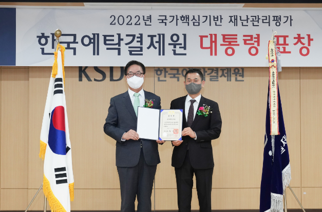 한국예탁결제원은 지난 12월 30일 행정안전부에서 주관한 2022년 국가핵심기반 재난관리평가에서 최우수기관으로 선정돼 대통령 표창을 수상했다고 3일 밝혔다.행정안전부는 ‘재난 및 안전관리 기본법’에 따라 2010년부터 국가핵심기반시설 관리기관을 대상으로 보호목표 설정, 위험평가, 중점위험관리, 재난관리대책 등 8개 항목을 매년 평가한다.이번 평가는 에너지, 원자력, 교통수송, 금융 등 11개 분야 총 141개 국가핵심기반 관리기관을 대상으로 진행됐다.예탁결제원은 기관장의 높은 관심도와 위험평가의 객관성 확보, 보호자원 관리 등 기관 특성을 반영한 보호계획을 수립해 평가에 임했다고 밝혔다.이명호 사장은 “이번 성과에 안주하지 않고 안정적으로 국가핵심기반을 운영해 국민재산을 보호하고 국가사회 발전에 이바지 할 수 있도록 노력과 정성을 다하겠다”고 말했다.