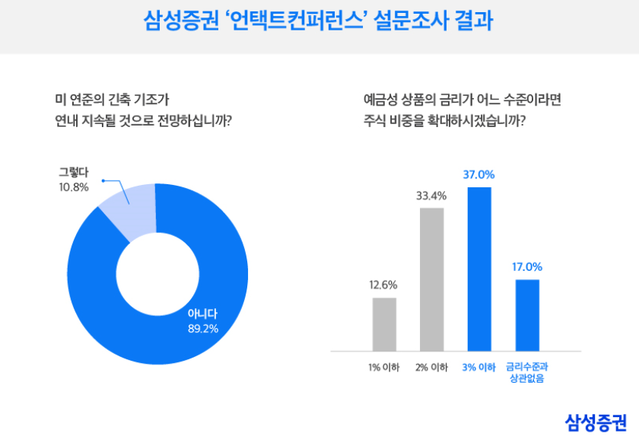 삼성증권은 국내 개인 투자자 10명 가운데 9명은 미국 연방준비제도(Fed·연준)의 긴축이 완화될 것으로 기대하는 것으로 나타났다고 25일 밝혔다.