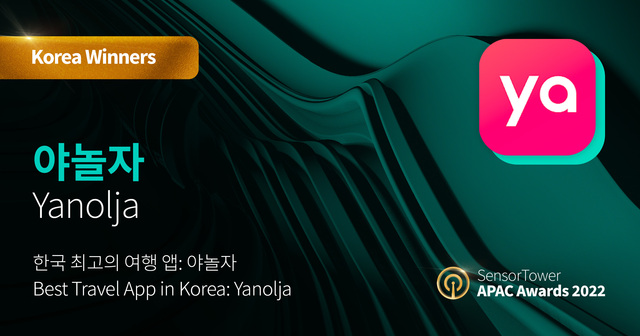 야놀자가 '센서타워 아시아 태평양 어워즈 2022'에서 '한국 최고의 여행 앱'을 수상했다고 9일 밝혔다.'센서타워 아시아 태평양 어워즈'는 글로벌 모바일 시장 데이터 분석업체인 센서타워가 주관하는 시상식으로 매년 전 글로벌 주요 앱·퍼블리셔를 선정해 발표한다.야놀자는 2022년 한국 여행 앱 다운로드 1위를 기록하고, 구글 플레이 스토어에서 여행 및 지역 정보 카테고리 내 톱5에 지속 오르는 등 독보적인 앱 성과를 인정받아 '한국 최고의 여행 앱'으로 선정됐다고 설명했다.구글 플레이 스토어와 애플 앱스토어에서 주요 여가 관련 키워드 검색 시 상위권을 차지해 다시 한번 압도적인 국내 1위 여가 플랫폼임을 입증했다고 전했다.송민규 야놀자 커뮤니케이션실장은 "앞으로도 여가 트렌드를 선제적으로 반영하고 고객 친화적 서비스를 확장해 글로벌 플레이어로서의 경쟁력을 지속 강화할 계획"이라고 밝혔다.