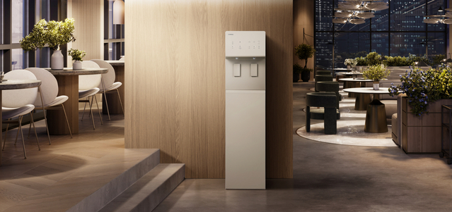 용량은 늘렸지만 가로 32cm의 슬림한 사이즈로 간단하게 설치할 수 있다. 다양한 편의 및 안심 기능도 탑재했다. 3단계 맞춤 용량(약 0.5L, 약 1L, 연속 추출) 추출이 가능하며 제품 하단부에 히든 휠을 장착해 이동이 편리하도록 했다.