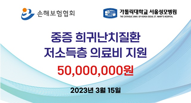 손해보험협회가 15일 가톨릭대학교 서울성모병원과 중증질환 등으로 어려움을 겪고 있는 저소득층을 대상으로 의료비를 지원하기 위한 업무협약을 체결했다고 밝혔다.
