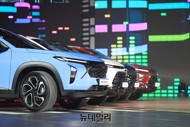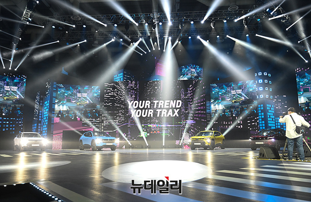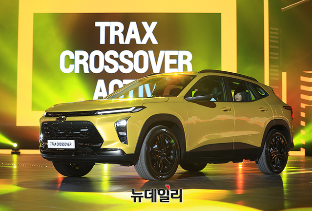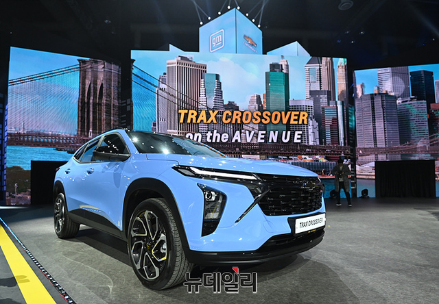 한국 GM이 22일 오전 경기 고양시 킨텍스에서 쉐보레 트랙스 크로스오버를 공개하고 있다.트랙스 크로스오버는 스타일리시한 디자인과 공간 활용성으로 다양한 소비자 층을 겨냥했다. 차량 크기는 전장 4540mm, 전폭 1825mm, 전고 1560mm로 넓은 실내 공간을 제공하며, 최고 출력은 139마력, 최대 토크는 22.4kg·m이다.또 다양한 트림 옵션을 제공하며 가격은 ▲LS 2052만원 ▲LT 2366 만원 ▲ACTIV 2681 만원 ▲RS 2739 만원이다.