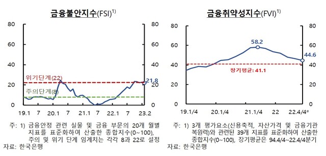 SVB 등 미반영에도 위기등급"주식, 채권, 외환 등 금융 부문 지표는 개선""분기별 금융취약성지수(FVI) 함께 살펴봐야"