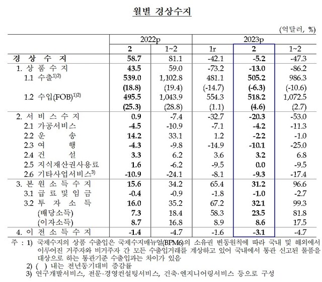 2개월 연속 적자는 11년만상품수지도 5개월 연속 적자반도체 등 수출 부진 지속
