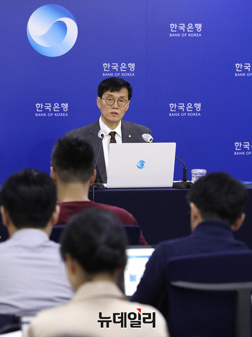 이창용 한국은행 총재가 11일 오전 서울 중구 한국은행에서 열린 금융통화위원회 기자간담회에서 발언하고 있다. 금통위는 통화정책방향 회의에서 현재 연 3.5%인 기준금리를 동결하기로 결정했다. (사진=공동취재단)