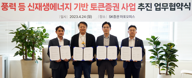 유진투자증권은 블록체인 기반 주민참여형 신재생에너지 플랫폼 개발사 파이브노드, 갤럭시아머니트리와 SK증권과 함께 '풍력 등 신재생에너지 기반 토큰증권 사업추진 업무협약(MOU)'을 체결했다고 25일 밝혔다.협약기관들은 지난 24일 서울 여의도 SK증권 본사에서 박승현 파이브노드 대표이사, 고광림 갤럭시아머니트리 신규사업본부장, 김성무 SK증권 디지털사업본부장, 송경재 유진투자증권 전략기획실장이 참석한 가운데 업무협약 체결식을 가졌다.이번 업무협약은 토큰증권 기술을 활용해 신재생에너지 발전사업의 원활한 자금조달과 주민참여 활성화, 새로운 투자기회 창출을 목적으로 체결됐다.앞으로 협약기관들은 토큰증권을 활용한 신재생에너지 금융서비스 모델이 혁신금융서비스로 지정받을 수 있도록 협업할 계획이다.혁신금융서비스로 지정되면 상업용 부동산 등에 편중돼 있는 토큰증권의 기초자산이 신재생에너지와 같은 현금흐름 위주의 안전 자산으로 다변화되며, 이에 따라 투자자들은 사회적, 환경적 가치를 공유함과 동시에 새로운 투자 기회를 제공받는다.또한 협약기관들은 탄소중립을 위한 신재생에너지 사업의 민간 참여를 확대하는 정부 정책 기조에 발맞춰 토큰증권을 활용해 신재생에너지 발전소 인근 지역주민이 손쉽게 사업 진행 정보와 이익을 공유할 수 있도록 기반을 조성할 예정이다. 이를 통해 신재생에너지 사업의 최대 걸림돌인 주민 수용성이 크게 향상될 것으로 기대된다.이번 협약에 따라 파이브노드는 해당 컨소시엄을 총괄하며 투자자 모집 및 자산 토큰화를 담당한다. 갤럭시아머니트리는 토큰증권 유통을, 유진투자증권은 기초자산 신탁과 토큰증권 발행을, SK증권은 계좌관리기관 역할을 맡는다.파이브노드는 기후 핀테크 스타트업으로 남부발전 블록체인 챌린지 공모전 대상, 제2서울핀테크랩 육성기업 선정과 더불어 신한금융그룹의 오픈이노베이션인 신한퓨쳐스랩에 동시 선정된 바 있다.갤럭시아머니트리는 토큰증권 사업 추진을 위해 지난 2월 가상자산 커스터디 전문 기업인 카르도와 STO 플랫폼을 구축했으며, 탄소배출권 STO 발행 업무 협약을 체결하는 등 적극적으로 토큰증권 사업을 추진 중이다.박승현 대표이사는 “파이브노드는 신재생발전사업의 직접적인 이해당사자인 주민들을 배려하고 소통하는 민간 참여모델을 구축함과 동시에 주민들의 실질적인 소득 증가에도 기여하고 싶다”면서 “현재 신재생에너지 주민참여 플랫폼 고도화를 진행 중으로 제도적인 기반을 마련해 국가적 과제인 탄소중립을 실현하는 데 일조하겠다”고 전했다.고광림 신규사업본부장은 "한국남부발전과 블록체인 사업을 추진하고 있는 파이브노드의 기술력과 금융권 내 STO 사업 선두 주자인 유진투자증권, SK증권의 강점을 융합해 빠르게 사업을 추진할 계획"이라며 "개인들은 신재생에너지 사업에 보다 손쉽게 투자하고, 개발사는 시장에서 필요한 자금을 편리하게 조달할 수 있을 것"이라고 설명했다.김성무 디지털사업본부장은 “SK증권은 안정적인 계좌관리 시스템 운영 경험을 바탕으로, 투자자 보호 환경 아래 신재생에너지 발전사업에 손쉽게 투자할 수 있도록 적극 지원할 예정”이라고 전했다.송경재 전략기획실장은 “탄소중립 기여, 신재생에너지 사업의 민간 참여 확대, 새로운 투자 기회 창출이라는 다양한 장점이 있는 이번 프로젝트의 성공을 위해 적극 지원하겠다”고 말했다.