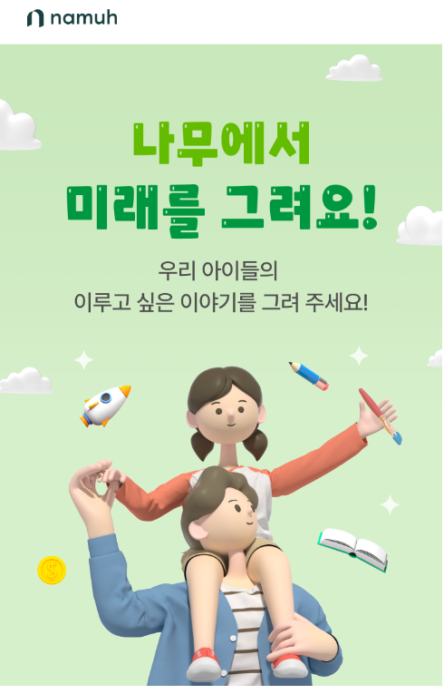 NH투자증권은 이달 21일까지 미성년자 자녀들의 돈에 대한 가치관 형성과 올바른 투자 습관을 정립할 수 있도록 어린이 그림 공모전 및 주식 적립식 첫 거래 이벤트를 진행한다고 10일 밝혔다.어린이 그림 공모전은 미성년 자녀가 있는 고객이라면 누구나 QV 또는 나무증권 모바일앱에서 자녀 계좌개설 후 이벤트를 신청할 수 있다.공모전을 희망하는 고객은 ‘돈을 모아 사고 싶거나, 이루고 싶거나, 하고 싶은 것’을 주제로 5월 21일까지 작품과 제작 과정을 사진 촬영해 이메일 제출하면 된다.대상에 입상할 경우 투자지원금 100만원과 한국미술협회 이사장상이 수여되며, 이벤트에 참여해 출품만 하더라도 투자지원금 5달러가 지급된다. 미성년자녀의 계좌가 회사 최초 신규 계좌일 경우 첫 거래만 하면 30달러를 추가로 지급받을 수 있다.공모전과 함께 국내·해외주식 적립식 첫 거래 이벤트도 6월 30일까지 진행된다.자녀 계좌에 연말까지 국내·해외주식 적립식 서비스를 가입하고 첫 매수 10만원 이상 거래 고객에게 20달러의 투자지원금을 제공한다. 어린이 그림 공모전과 적립식 첫 거래 이벤트, 최초 신규 첫 거래 이벤트까지 참여한다고 가정하면 최대 55달러 투자지원금을 수령할 수 있다.이성복 나무마케팅부장은 “금융교육의 중요성이 강조되는 요즘, 부모가 어린 자녀들에게 알려주고 싶은 ‘돈의 가치와 올바른 투자 습관’이 무엇일까에 대해서 고민했다”며 “미래의 주력 고객이 될 미성년 고객을 위한 특화 서비스 및 이벤트를 통해 지속적으로 고객과 소통할 수 있도록 노력할 것”이라고 밝혔다.